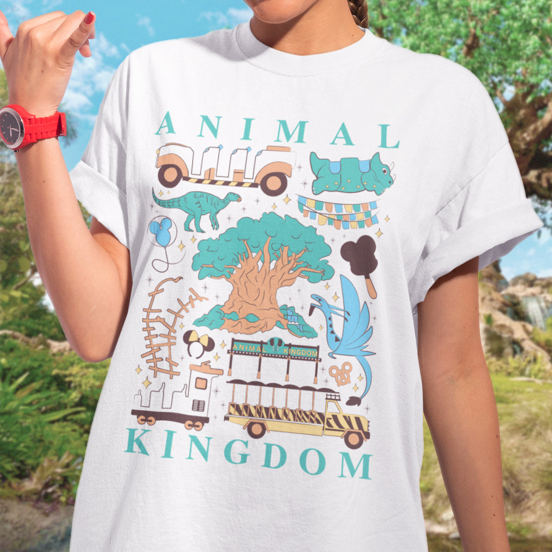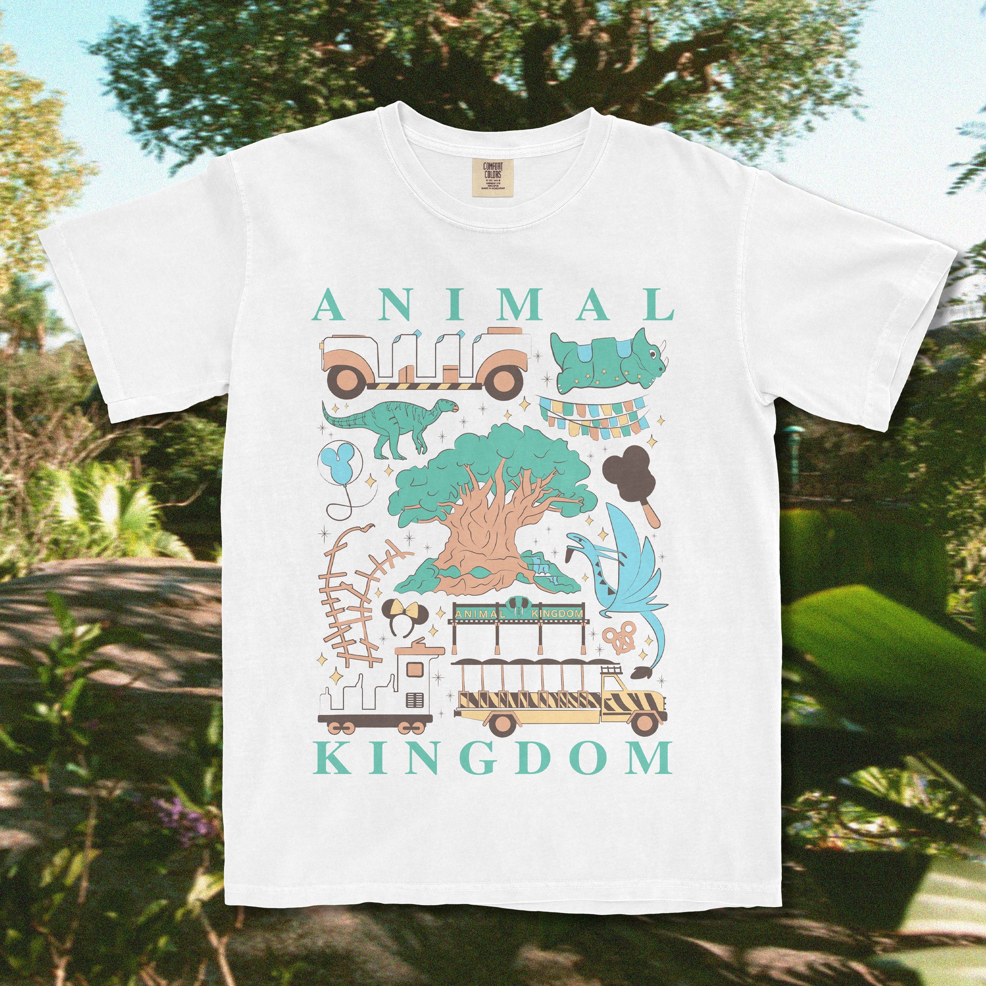 Unleash your adventurous spirit with our Animal Kingdom Park Icons t-shirt. This t-shirt showcases the iconic sights and landmarks that define the essence of the Animal Kingdom. Crafted with care and printed on premium Comfort Colors fabric, it offers a one-of-a-kind aesthetic that will look great as the centerpiece of your next park day adventure.