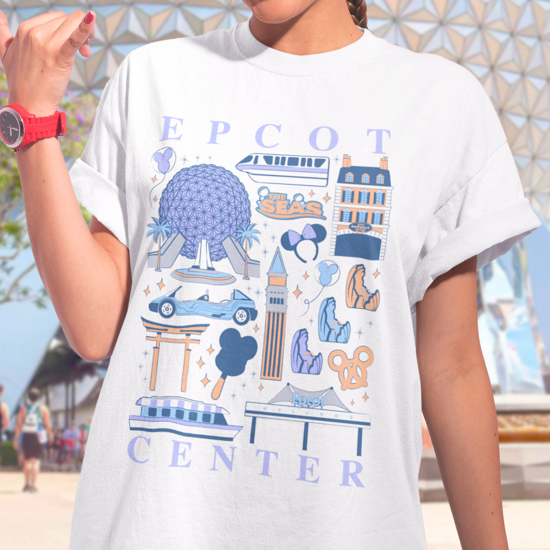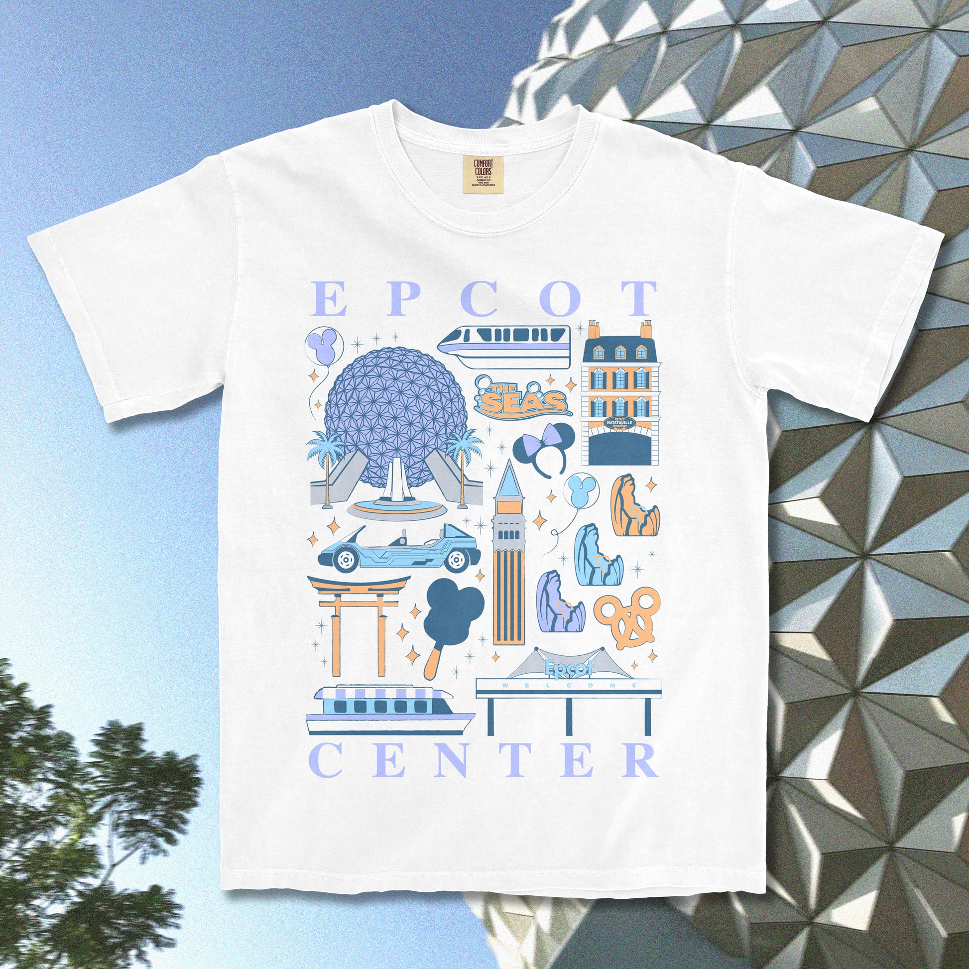 Ignite your sense of wonder with our Epcot Park Icons t-shirt. This shirt features iconic sights and landmarks that embody the spirit of Epcot. Crafted with care and printed on premium Comfort Colors fabric, it offers a one-of-a-kind aesthetic that will look great as the centerpiece of your next park day adventure.