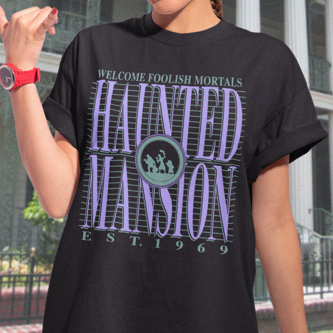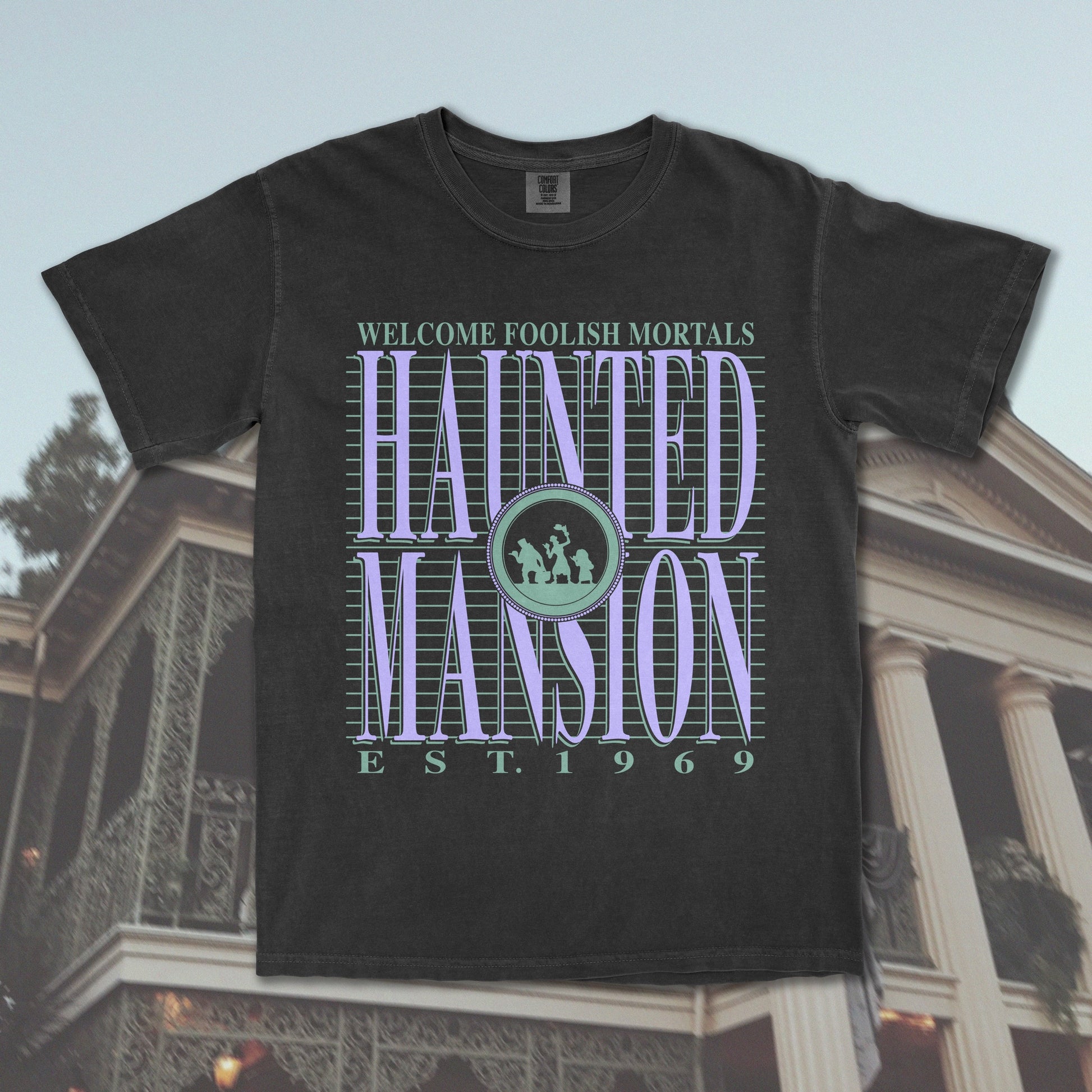 Step into your Doom Buggy... with our Haunted Mansion University t-shirt. Show off this timeless attraction with the classic charm of a vintage university sweatshirt! Crafted with care and printed on premium Comfort Colors fabric, it offers a one-of-a-kind aesthetic that will look great as the centerpiece of your next park day.