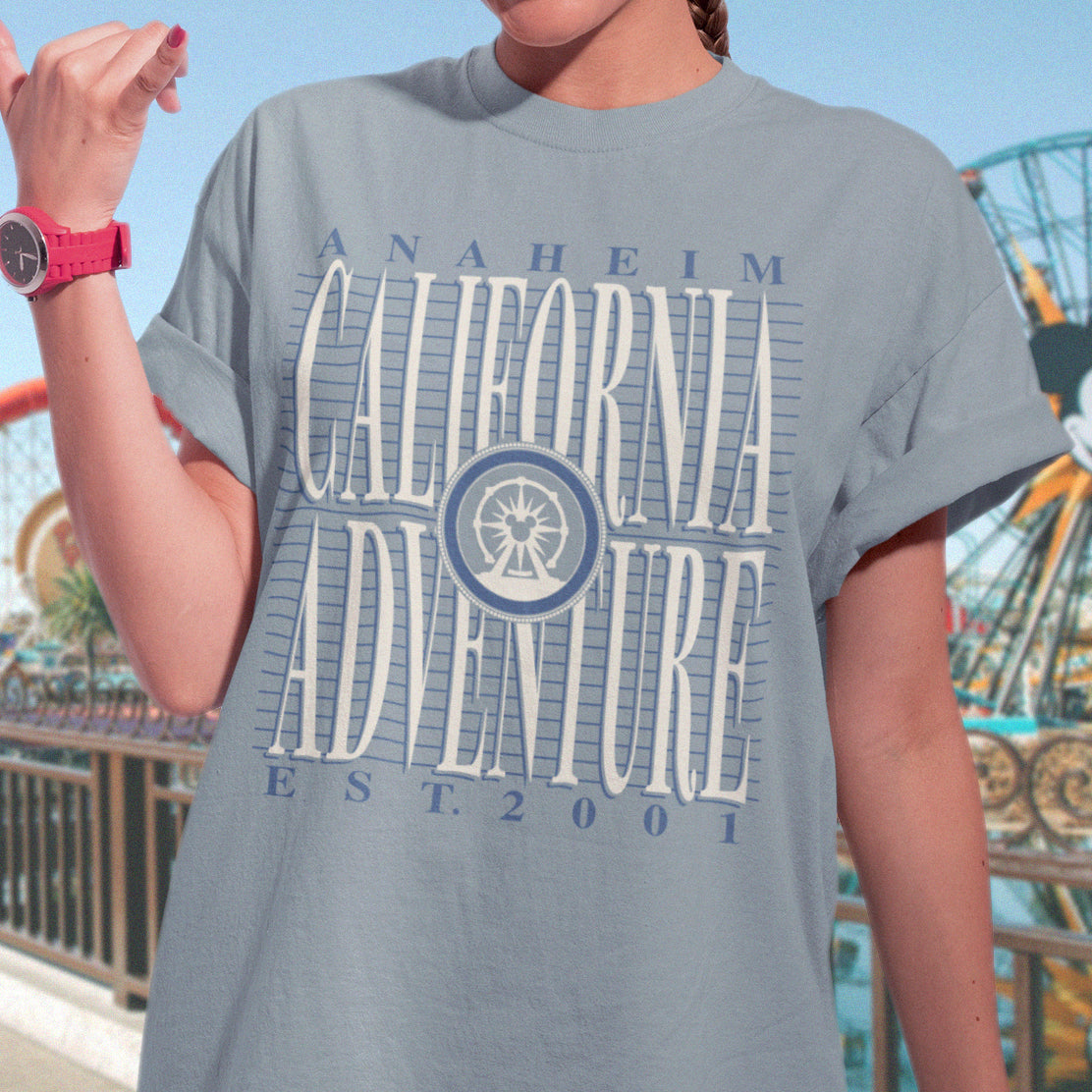 Give your next California adventure a throwback look with our California Adventure University t-shirt. Show off this timeless park with the classic charm of a vintage university sweatshirt! Crafted with care and printed on premium Comfort Colors fabric, it offers a one-of-a-kind aesthetic that will look great as the centerpiece of your next park day adventure!