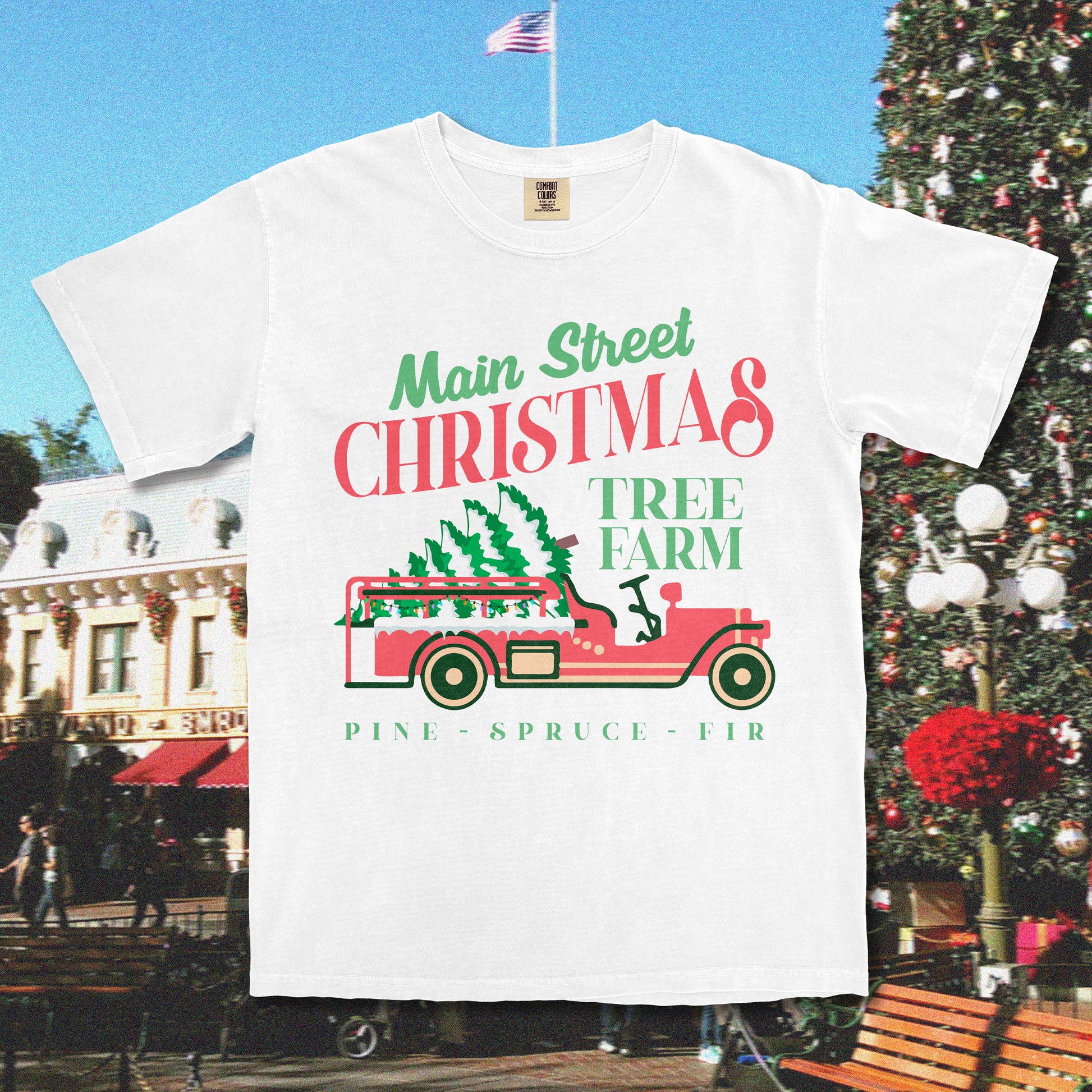 Take a ride down Main Street with our Main Street Christmas Tree Farm t-shirt! This t-shirt features the classic Main Street fire engine, filled with festive pumpkins, which is guaranteed to have you embracing the spirt of Christmas. Crafted with care and printed on premium Comfort Colors fabric, it offers a one-of-a-kind aesthetic that will look great as the centerpiece of your next Christmas time park day.